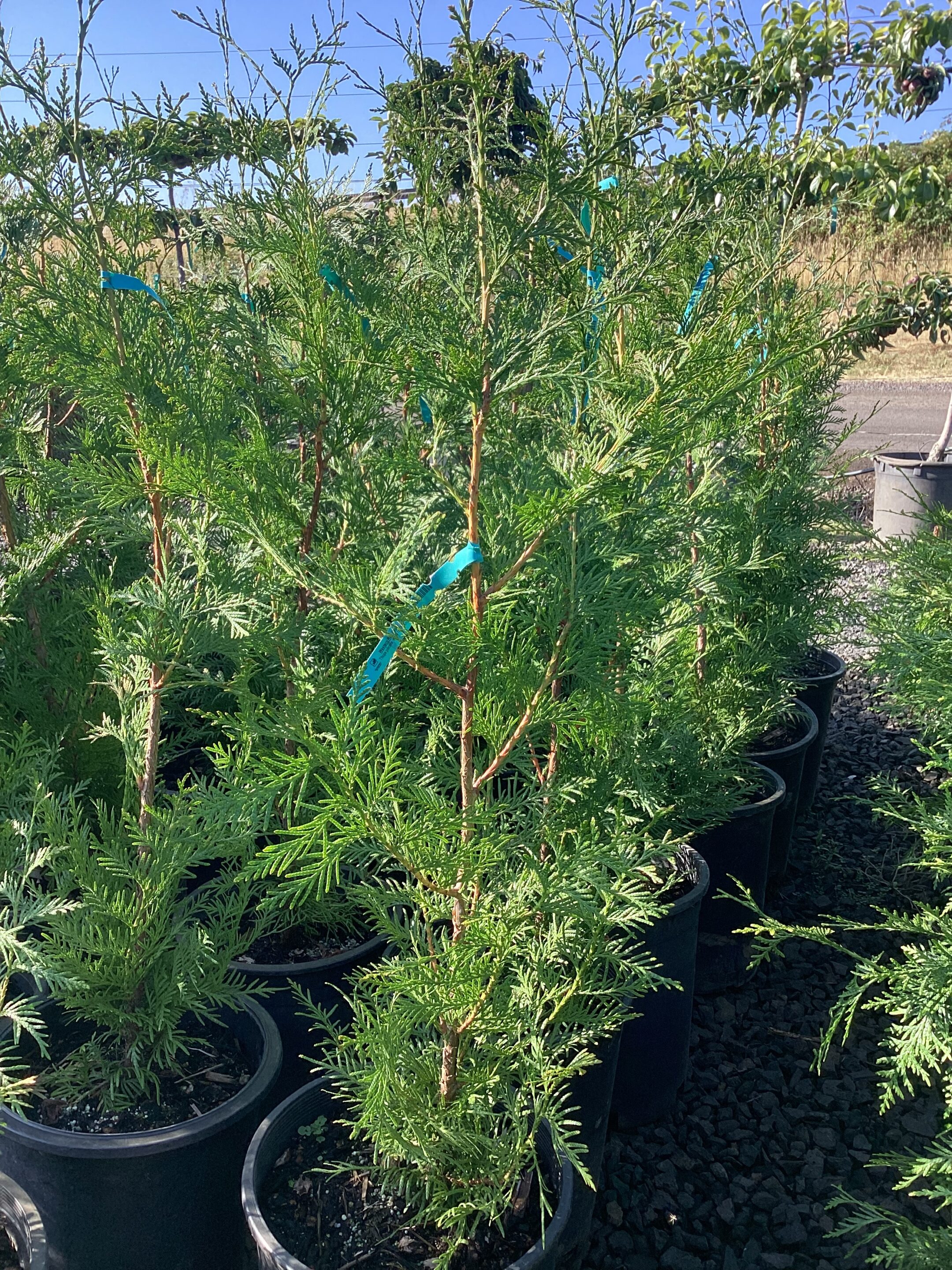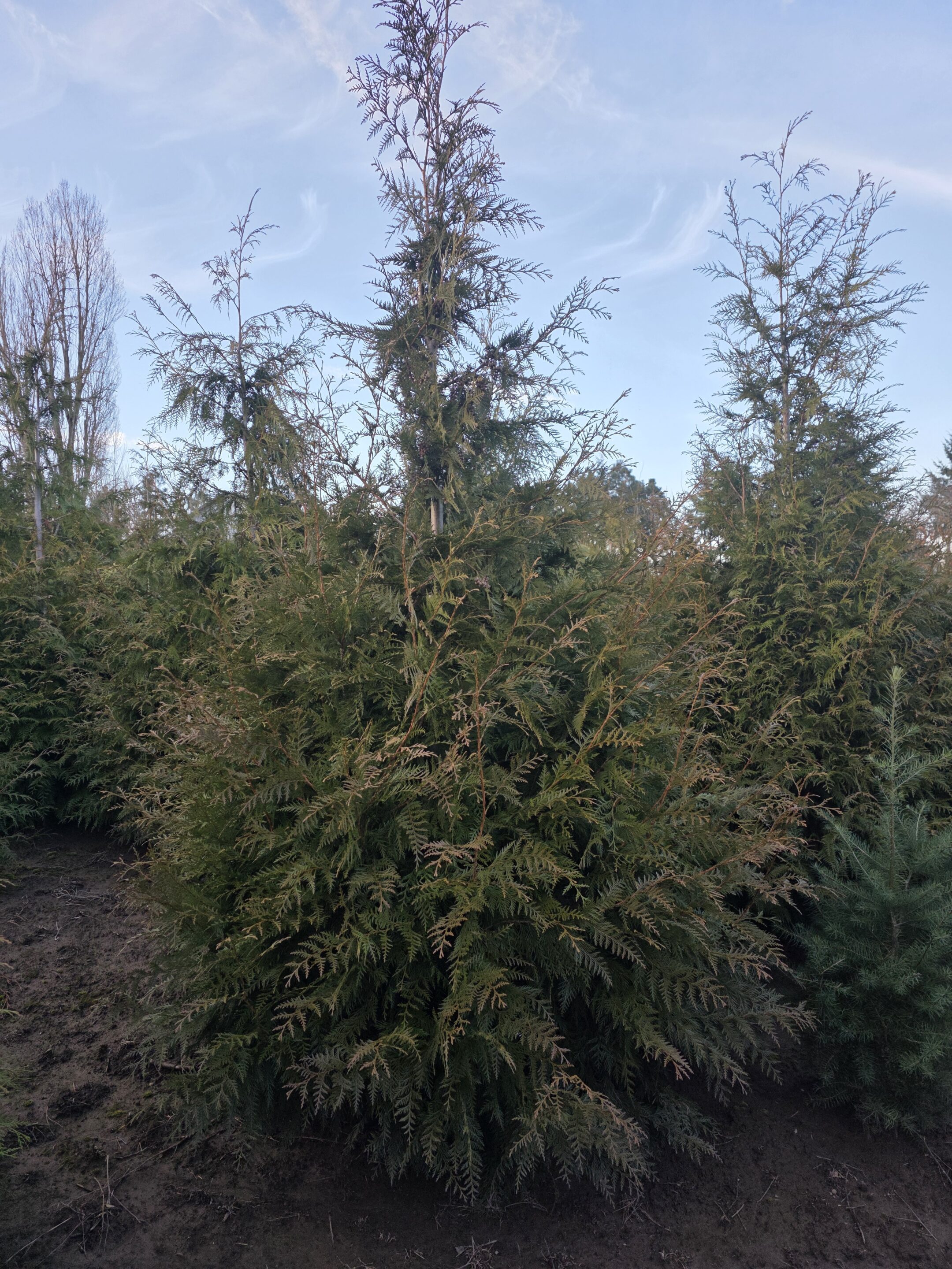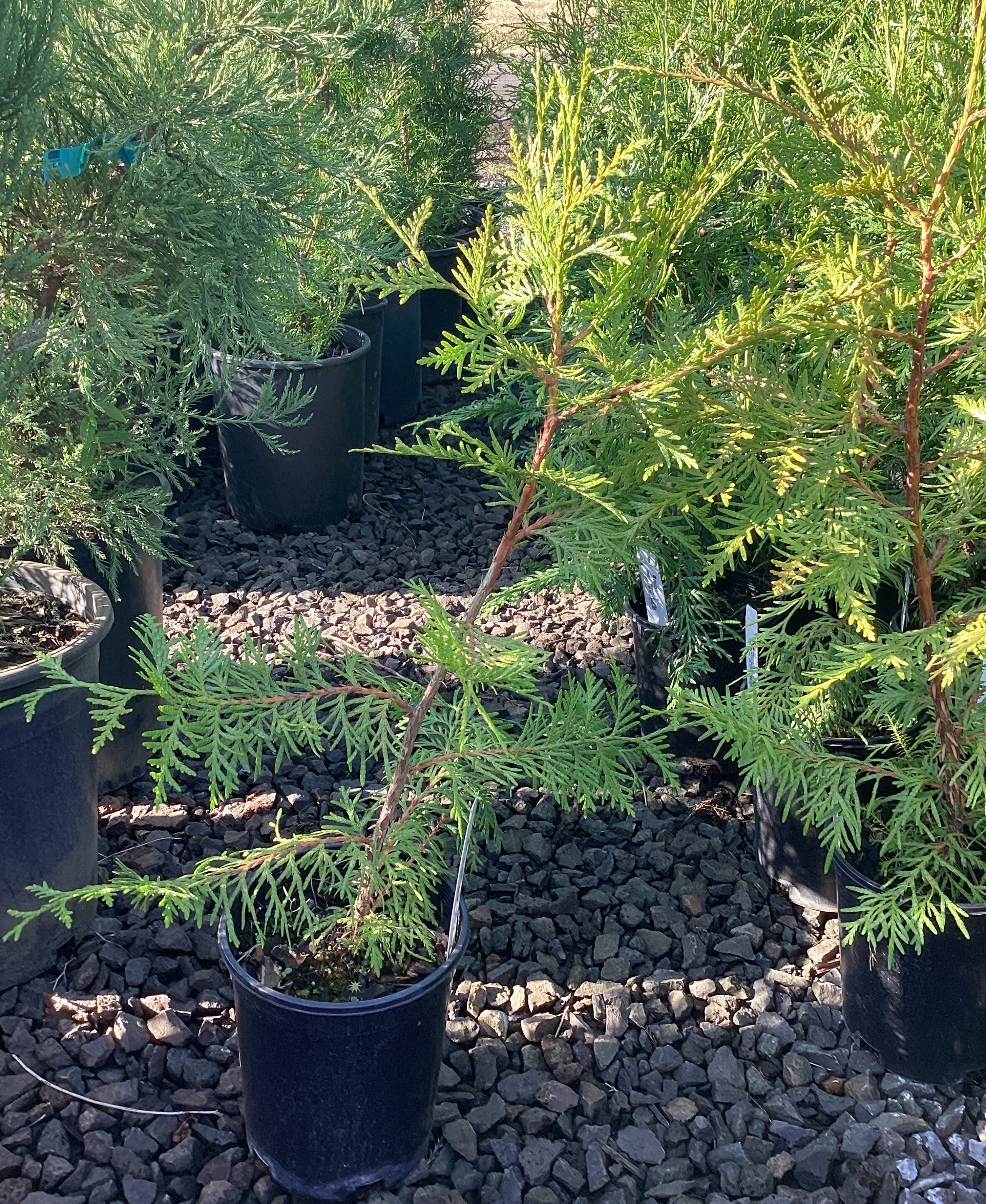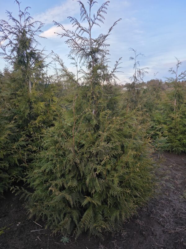 This majestic, evergreen tree is renowned for its tall, straight trunk and distinctive reddish-brown bark that peels in long strips. Its flat, lacy sprays of scale-like leaves are aromatic when crushed, releasing a sweet, chamomile-like scent. Native to the Pacific Northwest, the Western Red Cedar is highly valued for its durable, rot-resistant wood, making it an excellent choice for timber, shingles, and outdoor structures. It is also a popular choice for tall hedges and privacy screens.
